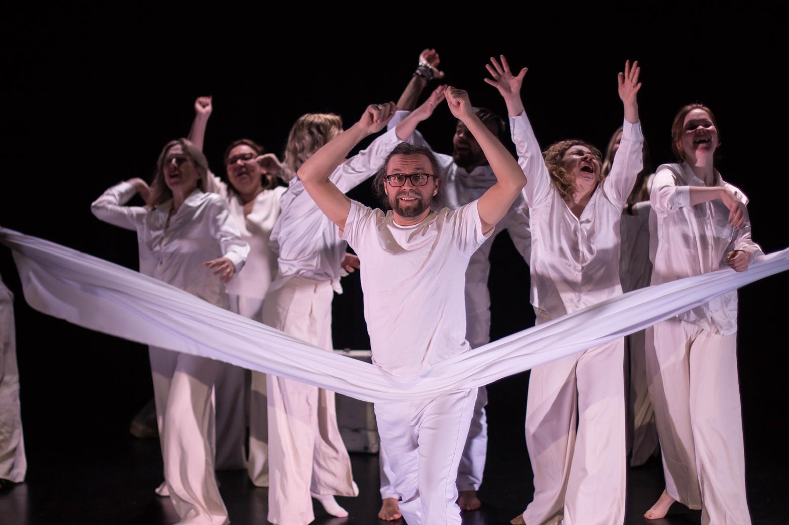 Как и в обычной жизни человека, в нашем спектакле переплетаются комедия масок и драма, фарс и гротеск.
